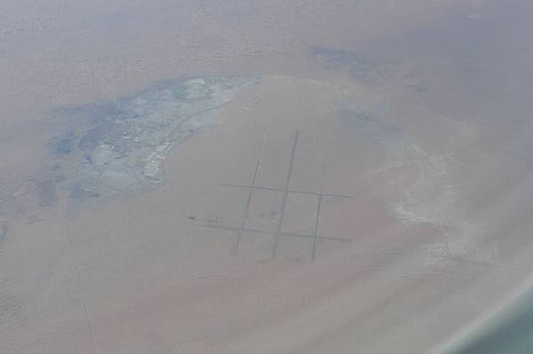 過了一陣子還是在嗡嗡中,往下一看!是沙漠耶~那個符號該不會有外星人吧