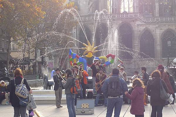 周邊的噴水池也有許多街頭藝人在表演,走在異鄉加上有音樂的伴奏整個人都輕鬆起來!但人多就是要小心扒手,還是趕快離開