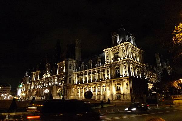 在這裡天黑的也特別快,離開聖母院往回走就看到剛看到的巴黎市政廳外牆的燈光以全亮起,這樣看起來又別有一番風味啊