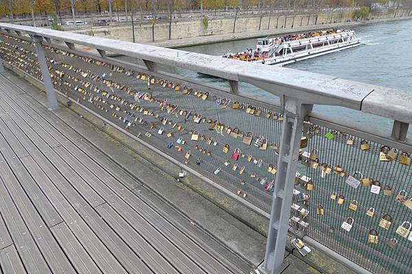 巴黎鐵橋上愛的鎖鏈,只要跟心愛的人把鎖頭掛在橋上,鑰匙丟進河裡,愛情就能長長久久? 乾五影? 當然我們沒有這麼做