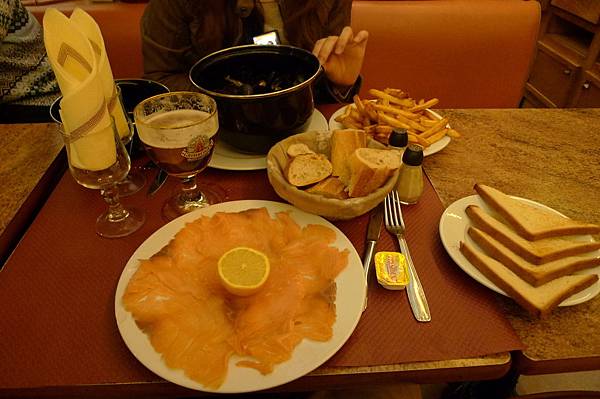 有些時候我們都是回到民宿自己烹飪晚餐,這天就想在街上的小餐館吃吃看!我點了一整盤的生鮭魚、Ema則點了一鍋淡菜!兩個人邊吃邊覺得都吃一樣的食物很無趣啊~