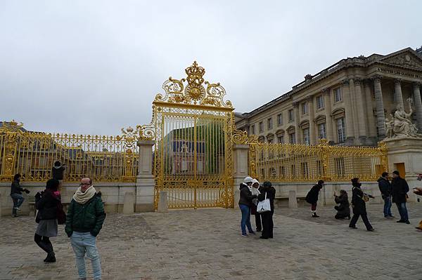 凡爾賽宮位在巴黎的郊區,需要搭車一個小時才到,但了之後光是看到大門就可以看到奢糜的金色大門!完全華麗到了極致
