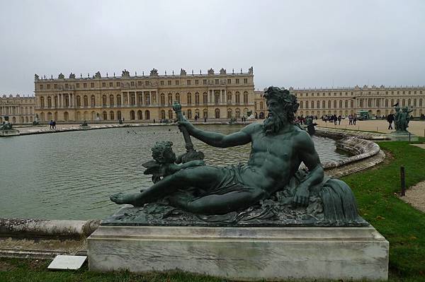 走道凡爾賽宮的戶外庭園,一望無際非常遼闊,池塘邊的這位大叔,風很大你不冷嗎???