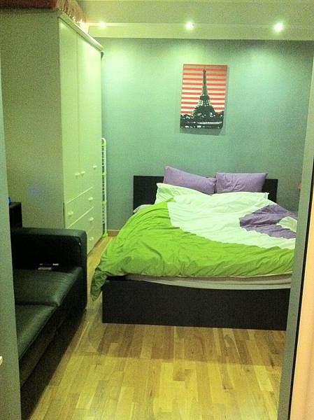 這是我們蜜月的床,一點都不浪漫但很實際,因為我們就是旅人,這裡只是讓我們睡覺充電的地方,顏色的搭配很吸引人吧